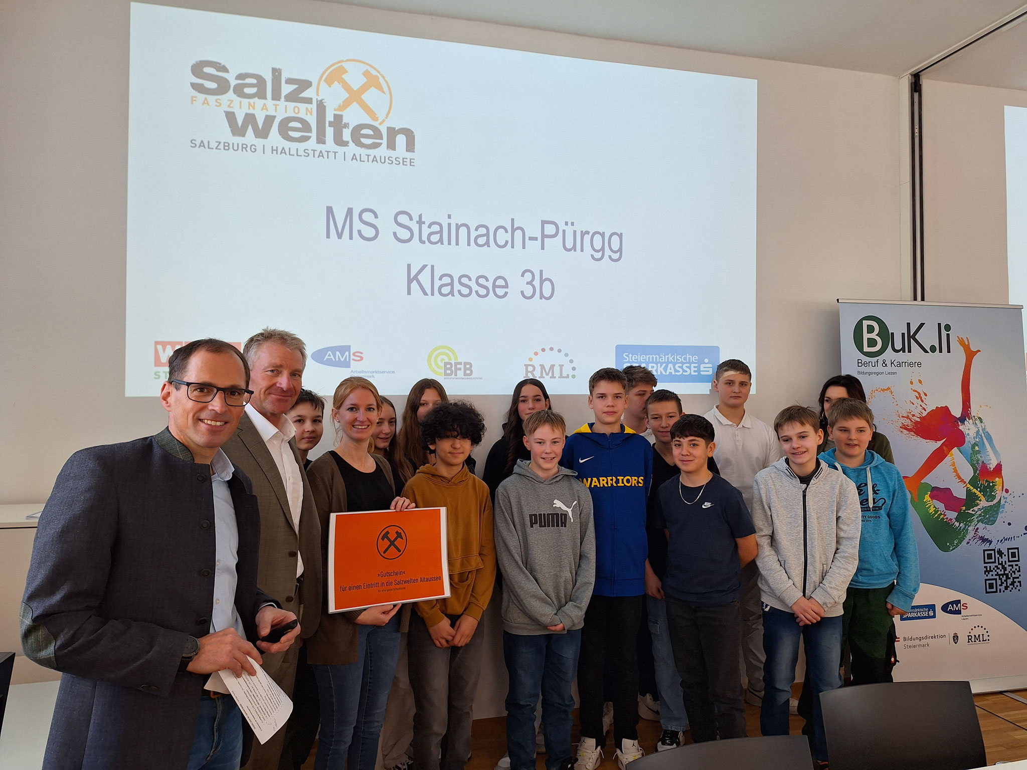 Über einen Ausflug in die Salzwelten freuten sich die Schüler:innen der 3b der MS Stainach-Pürgg. Ein Schitag auf der Riesneralm ging an die 4d des Stiftsgymnasiums Admont. Die Schüler_innen der 3b der MS Stein/Enns dürfen den Dachstein erkunden und die 4s der Ski-MS Schladming erwartet eine Sondervorstellung im Star Movie in Liezen.